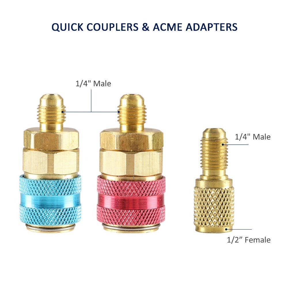 5FT AC Diagnostic Manifold Freon Gauge Set Fits for R134A R12, R22, R502, with Couplers, Adapter for Car A/C System Automotive Air Conditioning
